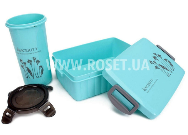 Набір Ланч боксу SINCERITY + термочашка складається з харчового пластику вищої якості, саме такий пластик не має в складі токсичних елементів, що пагубно впливають на організм людини, і стійкий до різкої зміни температури, що дозволяє розігрівати їжу в мікрохвильовій печі. Завдяки спеціальній кришці, бокс для обідів не протече на Ваші особисті речі і не залишить плями їжі на них, адже засувки на кришці, з обох сторін, щільно притискають Lunch Box SINCERITY і створюють всередині вакуум, що не дозволяє відкритися в середині сумки або рюкзака. Чашка-стакан з набору SINCERITY так само має фіксує кришку, що не дозволяє напою розлитися в самий не підходящий момент.