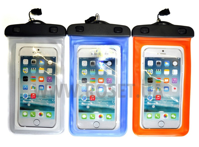 Так як, водонепроникні чохли мають 3 варіанти забарвлення: помаранчева, блакитна і прозора.