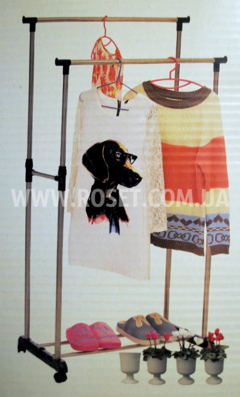 Великим плюсом стійки для одягу Double Pole Clother Hose є наявність невеликих коліщаток, завдяки яким Ви зможете пересунути стійку навіть повністю завішену одягом. Стійка Double Pole Clother Hose виконана як би двоповерховою, для упорядочнивания і нормального, компактного, розміщення одягу на ній. Бічні поперечні планки зручні для розміщення на них, допустимо, випрасуваних штанів. Краще всього для стійки використовувати вішалки, так одягу можна розмістити в рази більше.