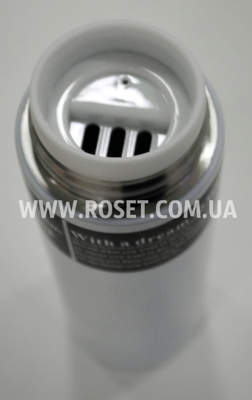 Великий інновацією в термосі With a Dream to Travel є її кришка. Кришка термоса With a Dream to Travel закручується, і при відкриванні відразу видно що і усередині все по-іншому. Нижня частина кришки має отвір для виходу рідини, і своєрідне видовжену шийку (своєрідна поїлка), що перешкоджає вона рідини. Ви можете як наливати напій в чашку так і просто пити прямо з термоса. А ось верхня частина це цілісна силіконова прокладка з висунутої серцевиной для більшого ущільнення, надійно закриває всю поверхню і запобігає протікання термоса.