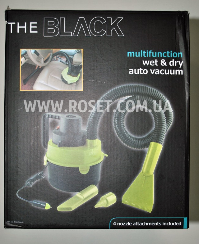 Автомобільний пилосос - The Black, виконаний по стилю і виду, як старі і надійні пилососи. Пилосос The Black має безмешковой контейнер для збору пилу і сміття, і двигун розташований у верхній частині. Надійні засувки легко закріплюють двигун і контейнер разом. Довгий шланг і різні насадки допоможуть якісно і практично забратися в салоні автомобіля.