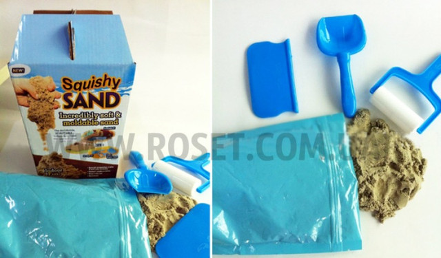 Хочете підняти настрій дитини і розвинути в ньому творчу особистість? Живий пісок розвиває дрібну моторику, залишаючи руки сухими і чистими. Ви можете зробити для ваших дітей пісочницю прямо вдома на столі. Кінетичний пісок Squishy Sand - це звичайний пісок з невеликою частиною сполучного полімеру в складі, тому він завжди залишається в'язким і нагадує пісок на пляжі.