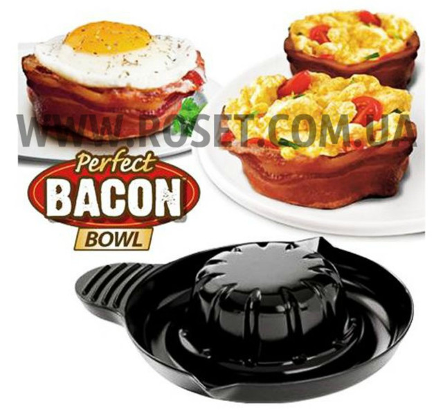 Дієтологи рекомендують починати день зі смачного блюда, яке є в кожному будинку – це яєчня з беконом. Поєднання смаженого яйця і бекону створює такий аромат, що не зможе встояти ніхто. Але смажена і жирна їжа не дуже корисна. Тому були винайдені їстівні тарілки з бекону, хліба, яєць - Perfect Bacon Bowl. Готувати з ними просто і легко, для цього потрібно всього лише обернути бекон навколо форм, далі помістити в духовку або мікрохвильову піч і готувати бекон до повного приготування. Далі наповнюєте будь-якими улюбленими інгредієнтами.