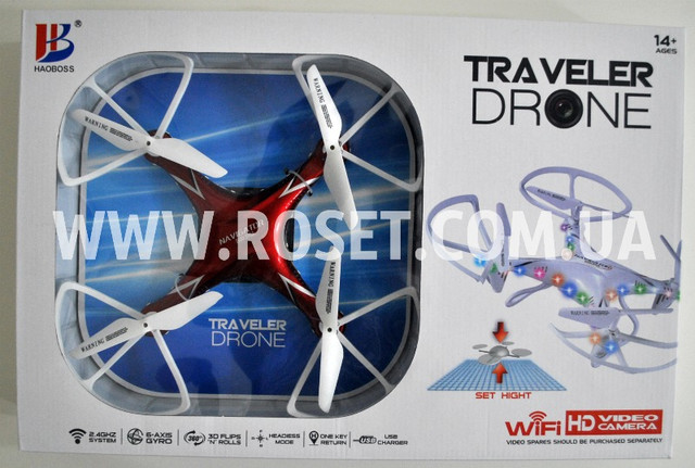 Квадрокоптер Navigator Traveler Drone 2.4 G with Wi-Fi Camera виконаний з міцного зносостійкого пластику, має вбудовані світлодіодні вогні. Двигуни досить потужні для маневрених поворотів і швидкого набору висоти. Вбудовані гіроскопи, окремі для кожного двигуна підйомної сили, синхронізовані для злагодженої роботи. Завдяки гіроскопа дрон здатний виробляти будь-які віражі на великій швидкості, не втрачаючи при цьому своєї стійкості.