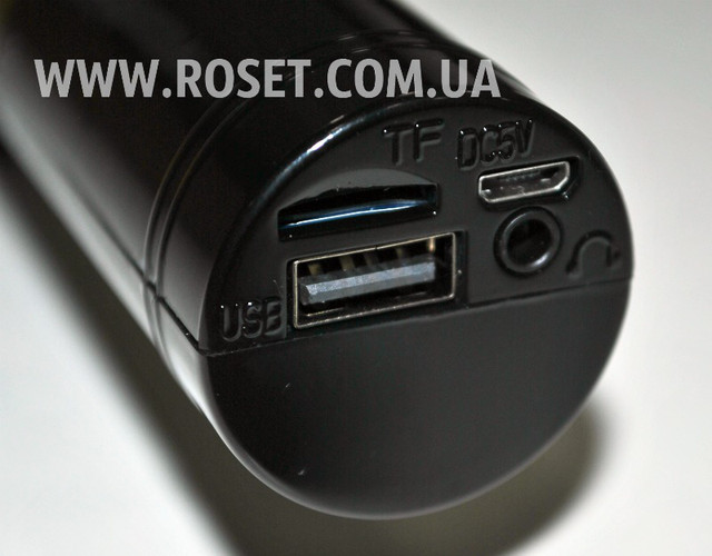 З торця знизу ручки мікрофона WSTER WS-1816 є інтерфейс USB, що дає можливість прослуховувати пісні та мінуси будь-яких форматів, роз'єм для флешки мікро SD, AUX-та мікро-USB для зарядки мікрофона.На мікрофоні так – же розташовані світлодіоди для підсвічування світломузики при непотрібності цю функцію можна відключити.